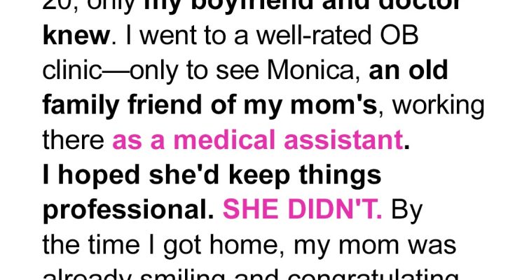 So, I made an appointment at one of the best OB-GYN offices in town. It was clean, professional, and discreet. It was exactly what I needed.Or so I thought.When I walked into the waiting room, my heart stopped for a second.Behind the reception desk, flipping through paperwork like it was any normal Tuesday, stood Monica, an old friend of my mom’s.