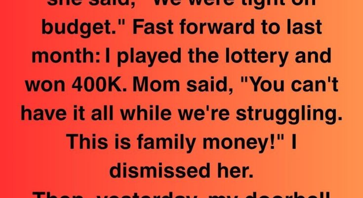 A month ago, everything turned upside down. I bought a lottery ticket just for fun, and somehow, I won four hundred thousand dollars. The moment my mom heard, she insisted the money belonged to the entire family.