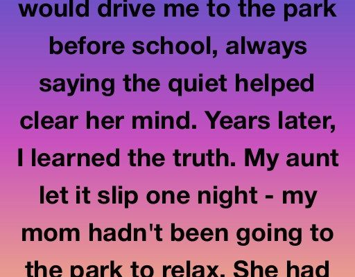 Every morning, my mom would drive me to the park before school, always saying the quiet helped clear her mind. Years later, I learned the truth. My aunt let it slip one night – my mom hadn’t been going to the park to relax.