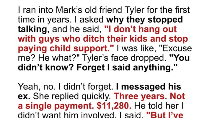 That night, I lay in bed staring at the ceiling while Mark snored peacefully beside me. Tyler’s words played on repeat: “abandons his kid… stops paying child support.”