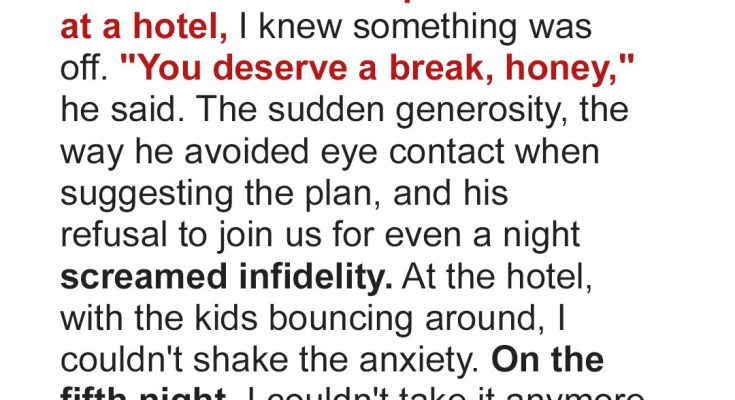 But there he was, all nervous energy and twitchy smiles, telling me to pack up the kids for a week at the Marriott.“You deserve a break, Cindy,” he said, not quite meeting my eyes. “Take Alison and Phillip, have some fun.”I tried to catch his gaze. “You’re not coming with us?”He scratched the back of his neck, a telltale sign of discomfort I’d learned to read over our eight years together. “Got this big project at work. Deadlines, you know how it is. But hey, the kids’ll love it, right?”