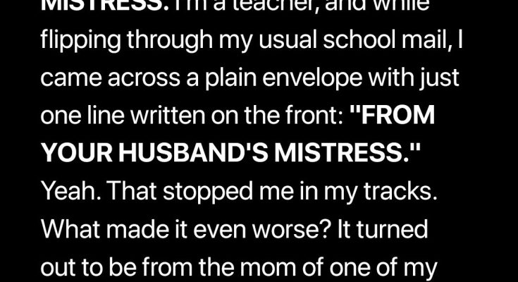 While sorting school mail, a teacher finds a chilling envelope: “From your husband’s mistress.” The sender? A student’s mom. The letter threatens to expose everything — unless she pays. Caught between fear and suspicion, she makes a choice she’ll soon regret.I was at work, sorting through my school mail like any other Monday.The classroom was quiet, and I hummed as I thumbed through the usual mix of memos, supply catalogs, and parent notes.