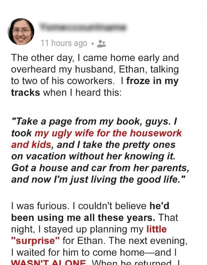 The word “ugly” kept ringing in my ears, like a cruel echo. I wanted to scream, to storm into the room and demand answers. But I didn’t.