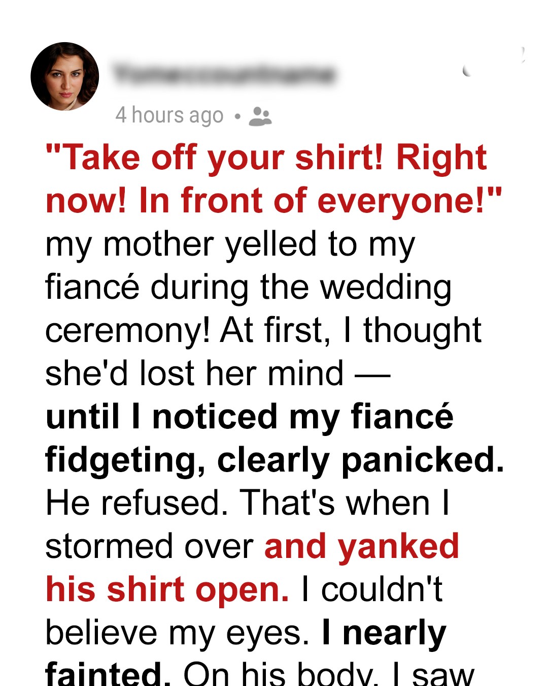 A hush fell over the guests. I thought my mom had lost her mind until I noticed my fiancé fidgeting, clearly panicked.
