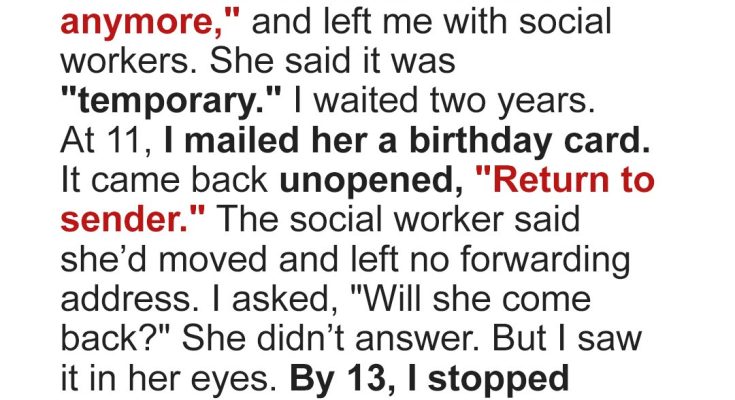 “No,” I said. “You’re a woman who left a kid behind and came back for shelter, not forgiveness.”