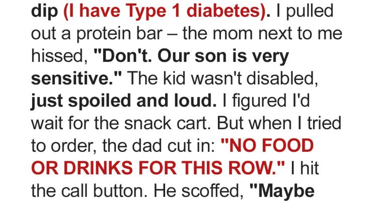 Never in my life did I think I’d have to fight for my right to eat a protein bar on a plane. But when faced with entitled parents who valued their son’s tantrum-free flight over my health, I refused to back down. What happened next left the entire row speechless.My name is Elizabeth, and I love almost everything about my life. I’ve worked hard to build a career I’m proud of as a marketing consultant, even though it means I practically live out of a suitcase sometimes.