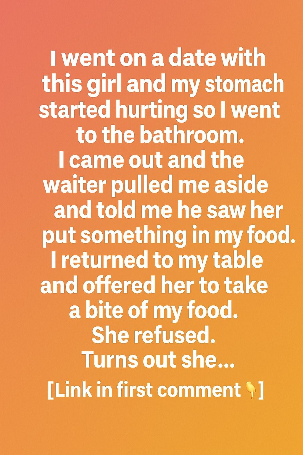 I went on a date with a girl, and halfway through the evening my stomach suddenly started hurting. I excused myself and went to the bathroom, trying to breathe slowly and calm down. The night had begun with excitement, but something felt slightly off—as if my nerves were working overtime.