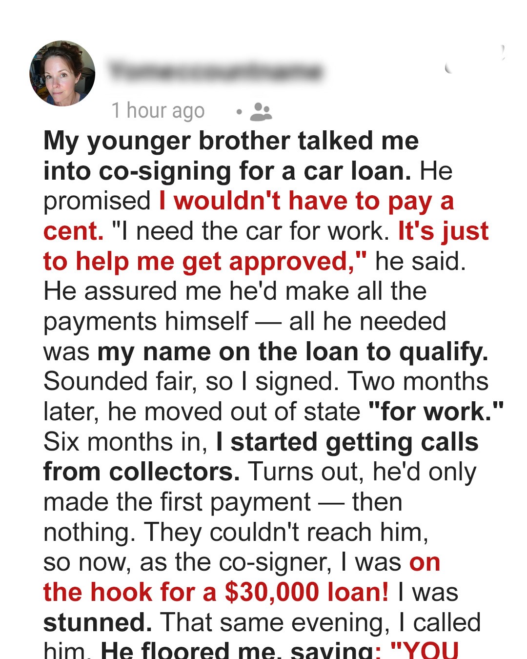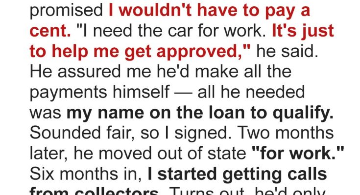 “It’s just a co-sign,” he said, sitting at my kitchen table, tapping his fingers nervously against the wood. “I need the car for work, Leah. My credit score is trash right now but yours is good. I’ll handle the payments… I just need your name on the loan to qualify. You won’t have to pay a cent.”
