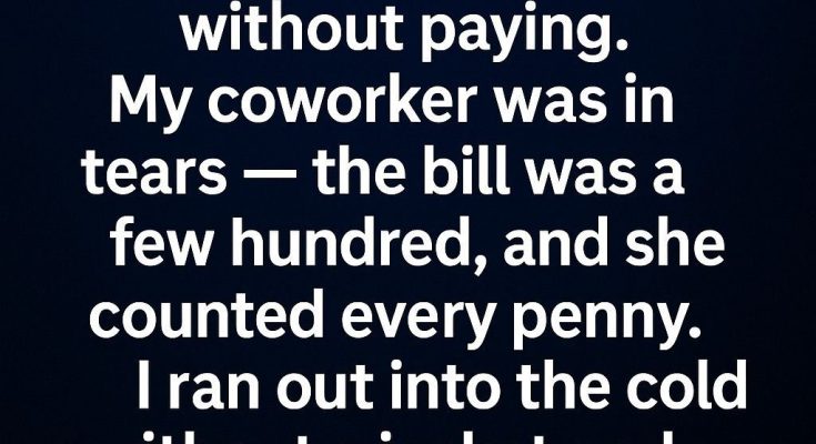 Without a jacket, I bolted into the freezing night, breath puffing into white clouds. Down the street, I spotted them. My voice shook more from nerves than cold as I called out, “You didn’t pay!” They turned, startled, and for a tense moment, no one moved.