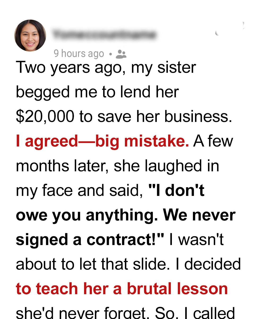 I Lent My Sister $20,000 to Save Her Business — She Refused to Pay Me Back, but Eventually Got the Harsh Lesson She Deserved