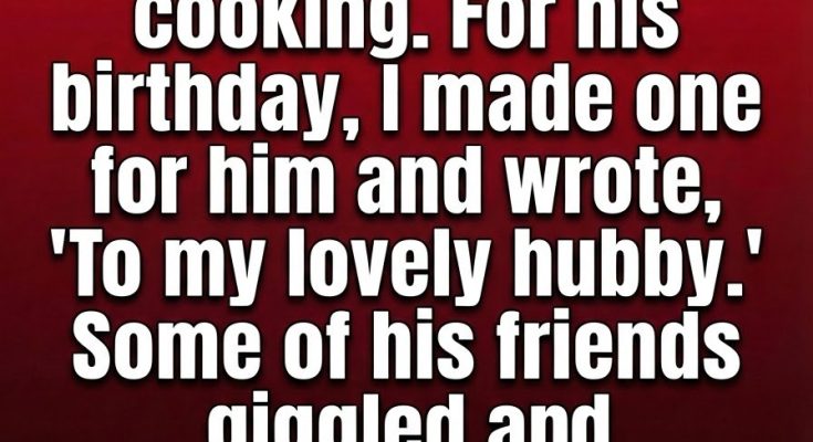 The table was covered with food, and the apple pie sat proudly in the center. When Lena brought it out, everyone clapped, and Aaron smiled widely. But as his friends leaned in to read the message, a few of them chuckled and exchanged amused glances.