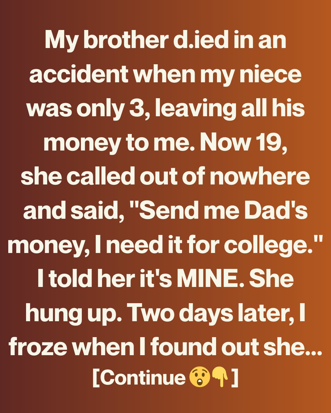 She went straight to the point. Her exact words were, “Send me dad’s money. I need it for college.” It felt like she was accusing me of taking something from her, as if I had stolen it.
