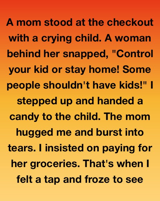 I stepped up and handed a candy—a small strawberry drop I’d grabbed from the impulse rack—to the child. I made a silly face, the kind that usually makes my nephew laugh, and for a second, the boy stopped mid-scream to look at the bright wrapper. The silence that followed was small, but it was enough to let the mom catch her breath.
