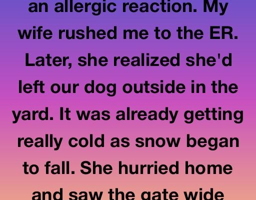 My wife, Nora, didn’t waste a second; she grabbed her keys, shoved me into the passenger seat of our SUV, and peeled out of the driveway. In the chaos of trying to save my life, she completely forgot that she’d let our golden retriever, Buster, out into the backyard just moments before. My wife rushed me to the ER, her knuckles white on the steering wheel as she navigated the icy streets of our suburb in Ohio.