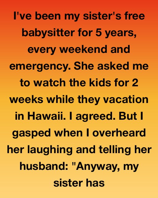 The door was slightly ajar, and I was about to walk in when I heard Clara’s voice drop into that tone she uses when she thinks she’s being particularly clever. But I gasped when I overheard her laughing and telling her husband, “Anyway, my sister has no life and no one else to spend her time with, so why should we pay a professional? She’s basically a house plant that feeds the kids.