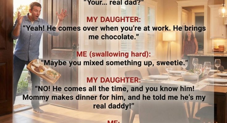 I opened the door and nearly dropped the tray in my hands because I saw MY OWN…”*…brother standing there, holding a bag of chocolates in one hand and a board game in the other. He froze when he saw my expression, clearly confused. Meanwhile, my daughter ran toward him shouting, “My real dad is here!” My brother burst into laughter—then quickly stopped when he saw my face.