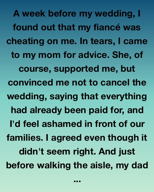 How he denied it at first, then admitted it, swearing it was over. How I hadn’t told anyone except Mom, and how she insisted the shame of canceling would be worse than the betrayal itself. Dad listened without judgment.