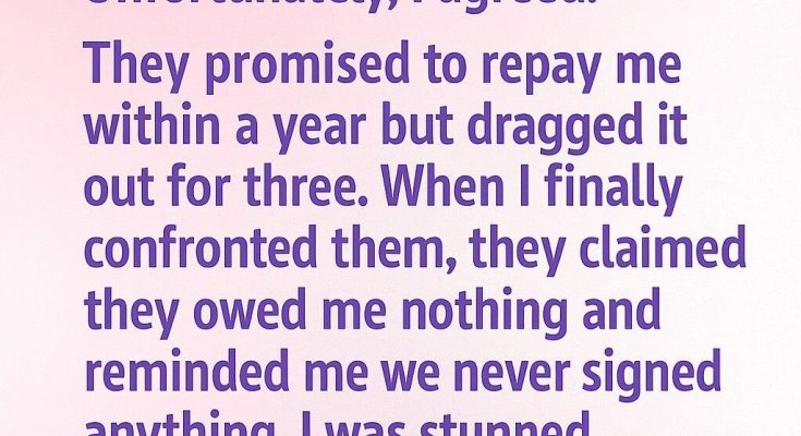 I trusted them completely, never imagining that trust would turn into one of the hardest lessons of my life. As months slowly became years, their excuses grew longer while my patience grew shorter. Whenever I gently brought up repayment, they brushed it off, changed the subject, or claimed they were “working on it.” When I finally sat them down for an honest conversation, they denied everything—and reminded me we had no written agreement.