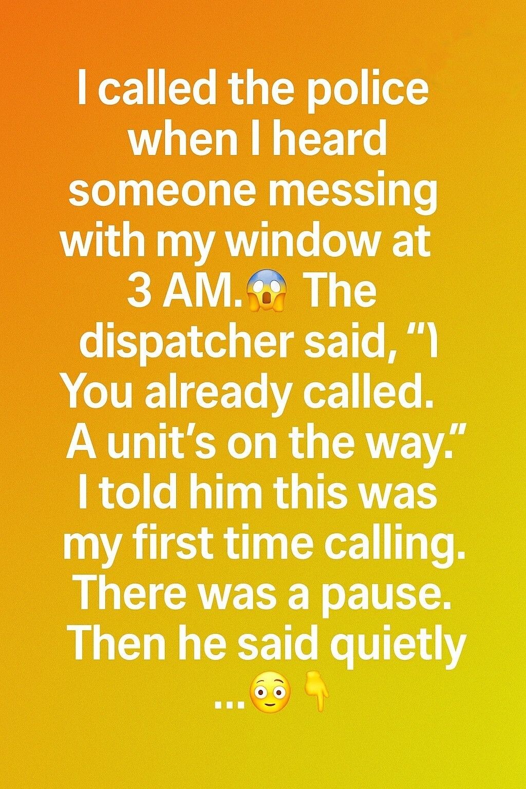 Then he explained that minutes earlier, they had received another call from my number. The message was exactly the same—a noise at the window and a request for assistance. Hearing those words made the world around me fall strangely silent.