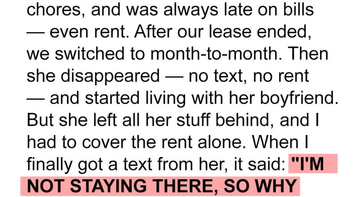 My Entitled Roommate Ditched Rent for Her Boyfriend, Left Her Stuff, and Ghosted Me – So I Made My Own Plans