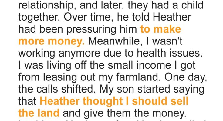 I thought Heather’s nerve peaked when she asked me to sell my land for her handbags and spa days. But then I saw the legal papers she had drawn up behind my back and I stopped playing nice. She thought I’d roll over but I made one quiet move that unraveled everything.When Heather married my son Matt, I gave her a warm welcome and the benefit of the doubt. She came into the marriage with a toddler from a previous relationship, and I treated him like my own grandson.