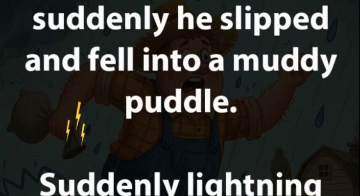 A farmer was running back home when it started to rain. Then suddenly he slipped and fell into a muddy puddle. Suddenly lightning flashed across the sky.The farmer annoyed shouted to the sky saying:“First you get me wet. Then you put mud all over my clothes. Now, as if that wasn’t enough YOU’RE TAKING A PHOTO OF ME !!!!”.