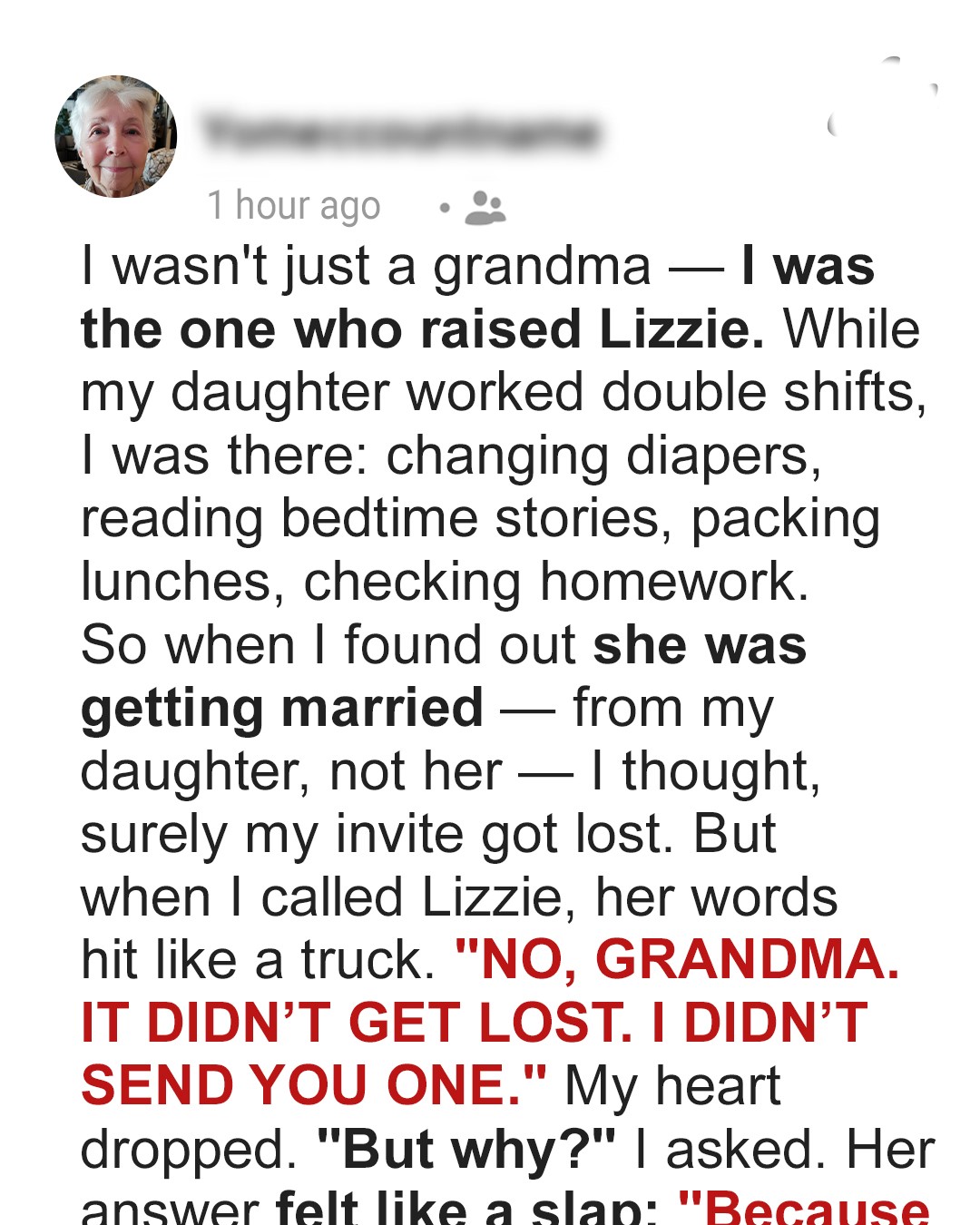 She raised her granddaughter, so when she heard about the wedding but didn’t get an invitation, her heart shattered. Desperate for answers, she makes a call that ends in a painful truth. But just when she thinks she’s been cast aside, a knock at the door changes everything.While my daughter Michelle scrambled between double shifts at the hospital, I was the constant in my granddaughter’s life.