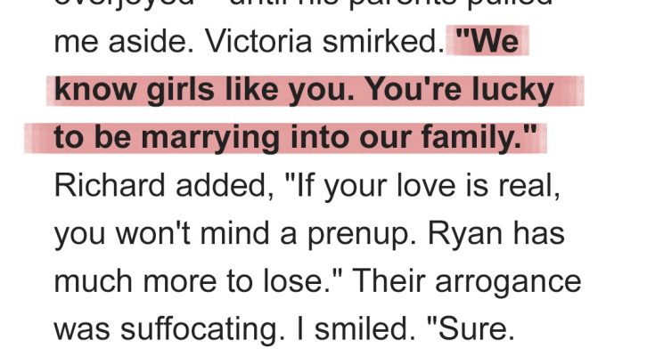 There’s a special kind of arrogance in people who assume they know your worth without ever bothering to ask. When my fiancé’s parents thought I was a gold-digger and demanded I sign an unfair prenup, I let them believe their own version of me. But the next day, they were in for a rude awakening.I never thought love could turn into a battlefield so quickly. One day you’re planning a wedding with the man of your dreams, and the next, you’re staring at his parents across a table as they try to strip you of your dignity… all with smiles on their faces.