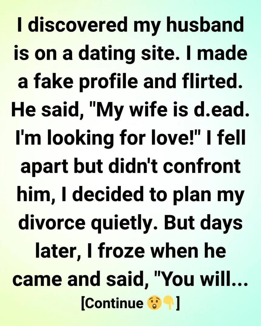 There it was: his profile, complete with messages to multiple women. My heart slammed against my ribs. My hands shook so hard I could barely scroll.And then I saw the worst message of all:“My wife is d.ead. I’m looking for love.”