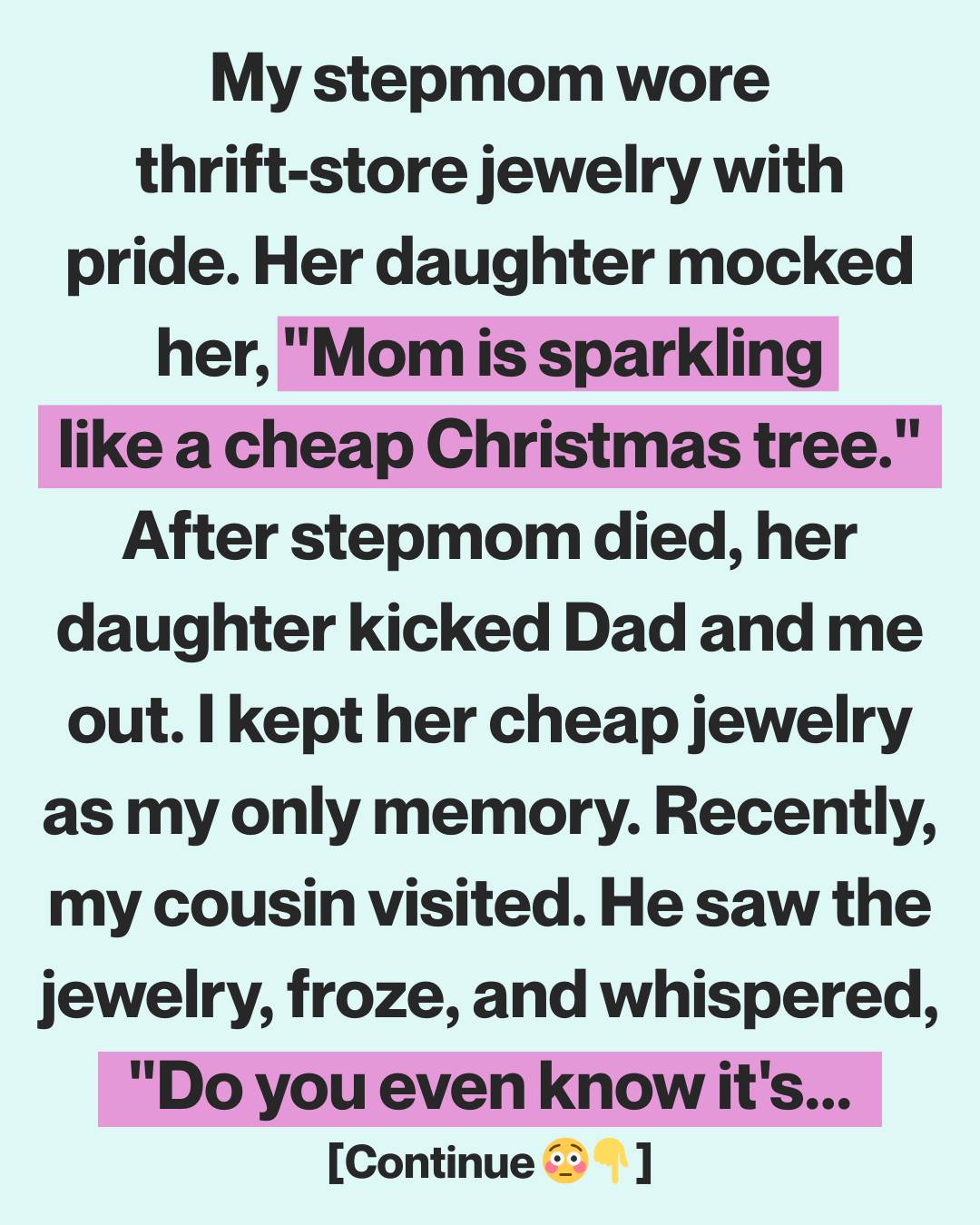 It felt like the room tilted under me. Turns out, mixed in with the plastic beads and tarnished chains were genuine antique pieces—real gold, real gems. My stepmom had either collected them secretly or inherited them.