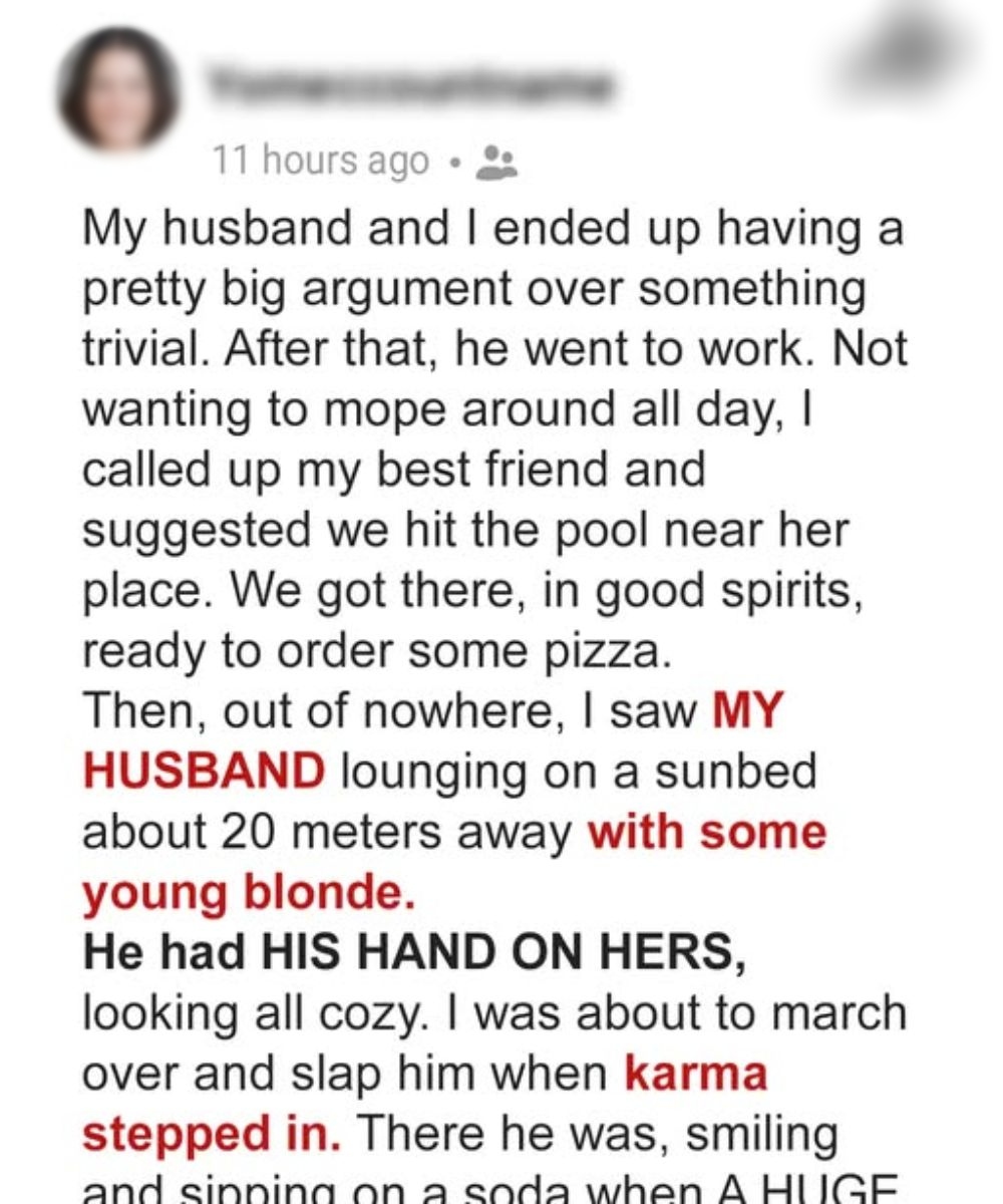 When I saw my husband with a young blonde at the pool, I was prepared to confront him and demand answers.Little did I realize that the unfolding drama would reveal not just his betrayal, but also set off a chain of events that would demolish our seemingly ideal lives.It was my day off, so I decided to make breakfast for Tom.“Morning, Tom. Breakfast is almost ready,” I said.“Morning,” he shouted.We sat down to eat, and that’s when it began. He didn’t like that I’d used the last of the blueberries.