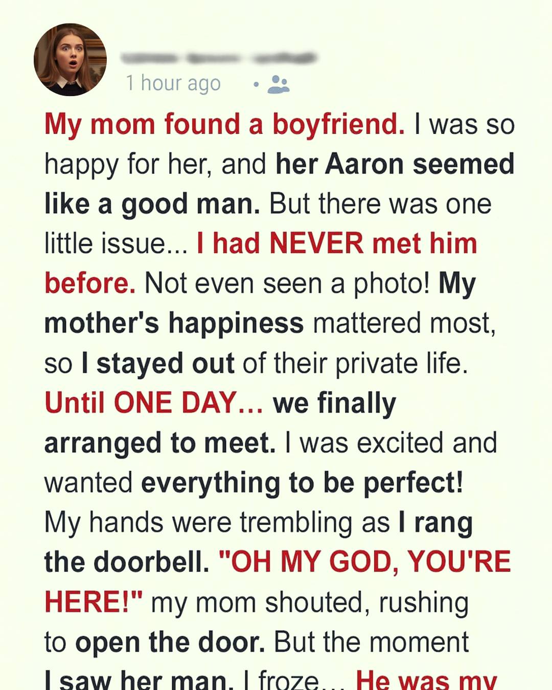 As I grew older, I often encouraged my mom to find someone new. She admitted she felt lonely, especially during those long, quiet evenings when the house seemed too big for one person. So, when she called me one afternoon, her voice bubbling with excitement as she announced that she had a boyfriend she wanted me to meet, I was genuinely happy for her.
