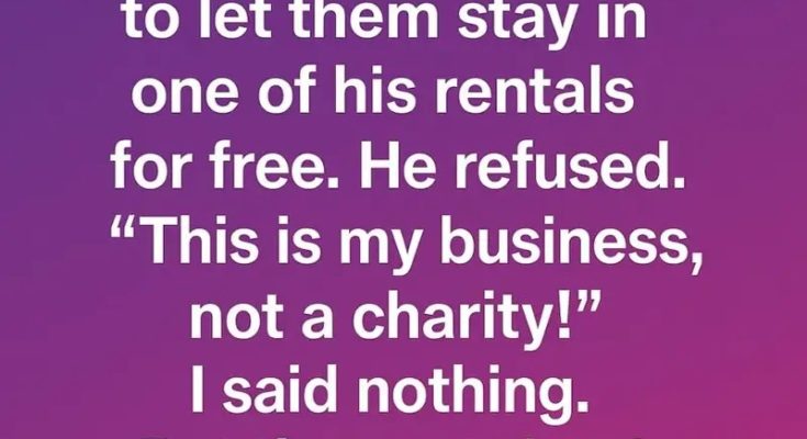 After a long conversation, he finally softened. The next week, he not only allowed my parents to stay in one of his rentals free of charge, but he also helped them find resources to rebuild their lives. Through this experience, we both learned a valuable lesson: true success is measured not just by profit, but by kindness and the bonds we nurture.