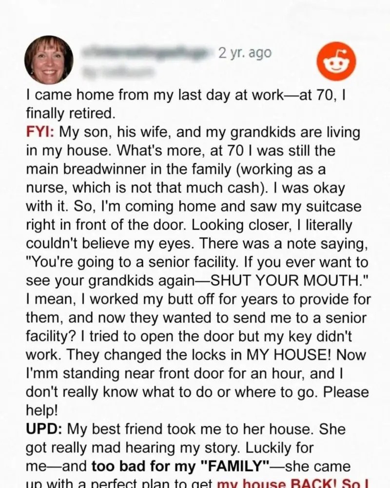 But when I arrived, something felt wrong—the front door was locked, and my suitcases sat neatly on the porch.I realized in an instant that life, after retirement, was about to change in ways I never imagined.For years, I had lived with my son Thomas, his wife Delia, and my two beloved grandchildren.