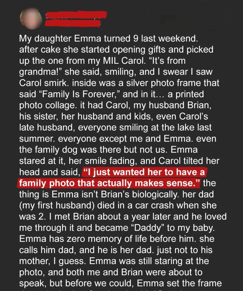 My Mother-In-Law Gave My Nine-Year-Old Daughter A ‘Family Photo’—But Purposely Left The Two Of Us Out To Make It Clear We’re Not Part Of The Family
