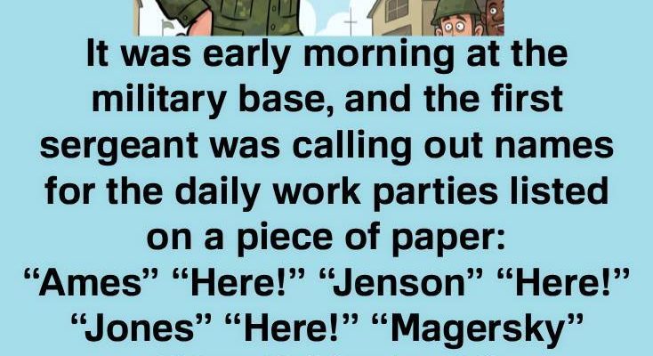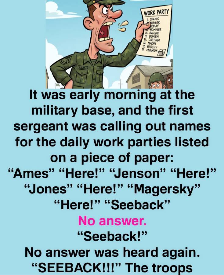 It was early morning at the military base, and the first sergeant was calling out names for the daily work parties listed on a piece of paper: