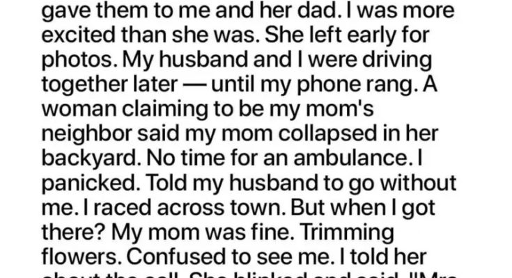 When he asked for my ticket “just in case,” I thought nothing of it.But on the way, a call changed everything — someone claimed my elderly mother had collapsed.Panicked, I turned my car around and rushed to her home, only to find her perfectly fine, trimming her roses. She had no idea what I was talking about — and no neighbor by the name of “Mrs.
