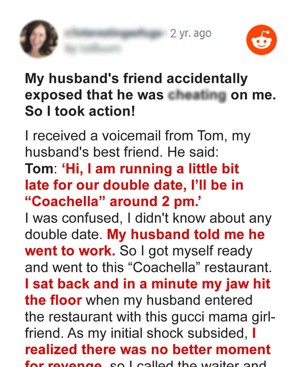 The friend of my husband accidentally exposed that he was ch.eating on me — and I acted fast. It all started with a voicemail.I had just gotten home from work when I noticed a missed call and a message from Tom, my husband’s best friend.Tom said, “Hey! Just a heads-up — I’m running late for our double date. I’ll be at Coachella around 2 p.m.!”Double date? Coachella? That caught me off guard — especially since my husband claimed he’d be working all day.