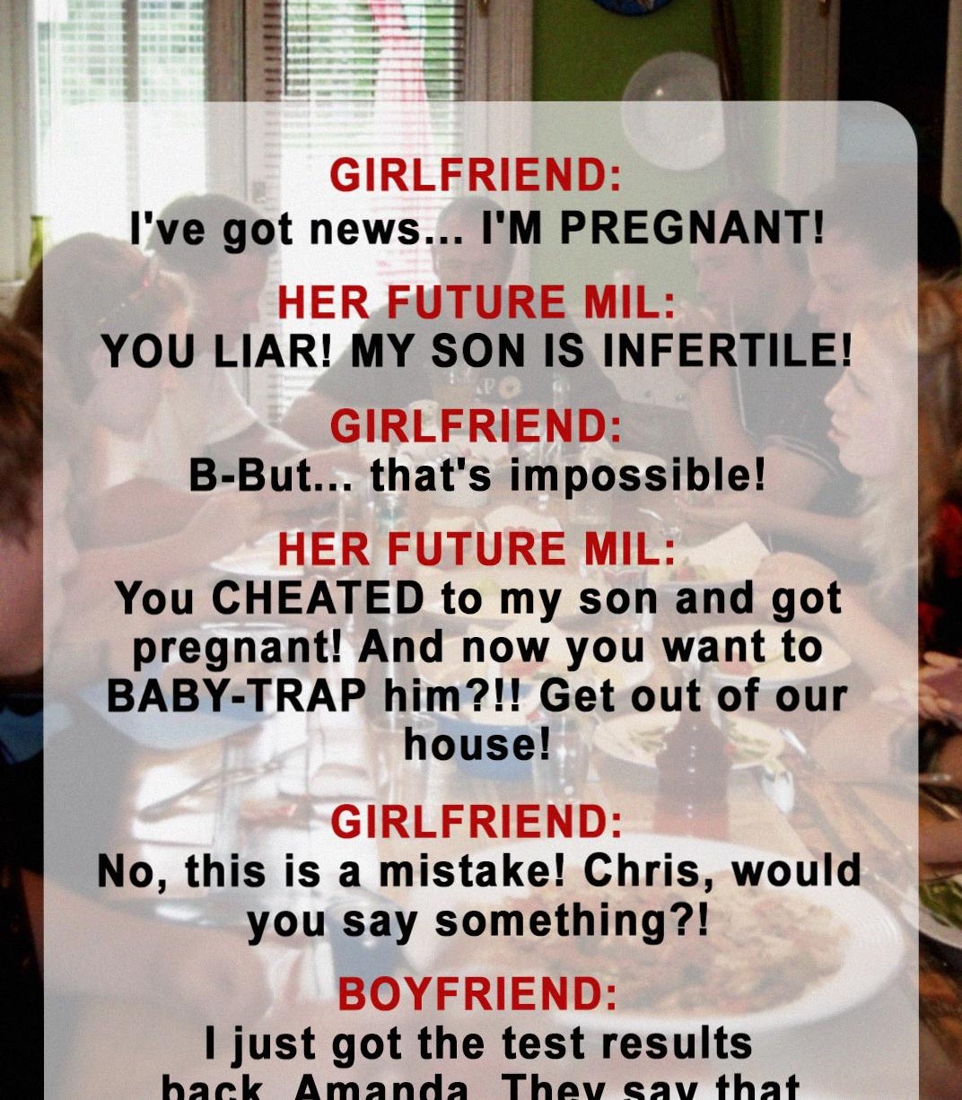 Amanda’s face paled. “No! Chris and I have been trying for months! This is our baby!”