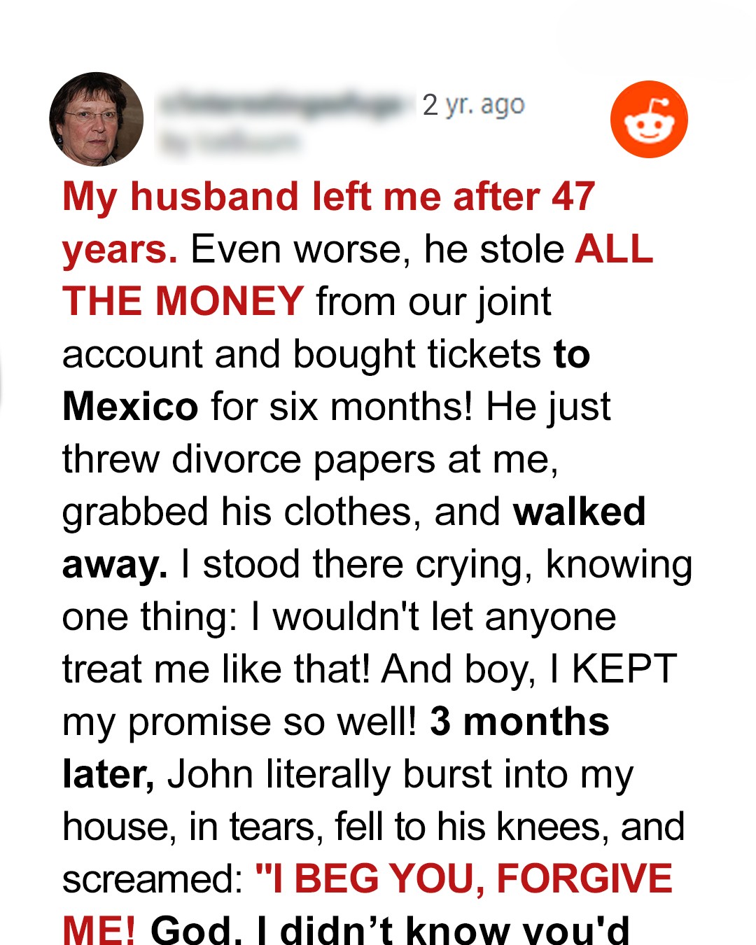 “Let’s see if you’d divorce me willingly or continue struggling to make ends meet and beg me for money. After all, what would a stay-at-home-wife like you do if she doesn’t have money? Have a good time, honey,” he said, mocking her. “I’m looking forward to my time in Mexico!”
