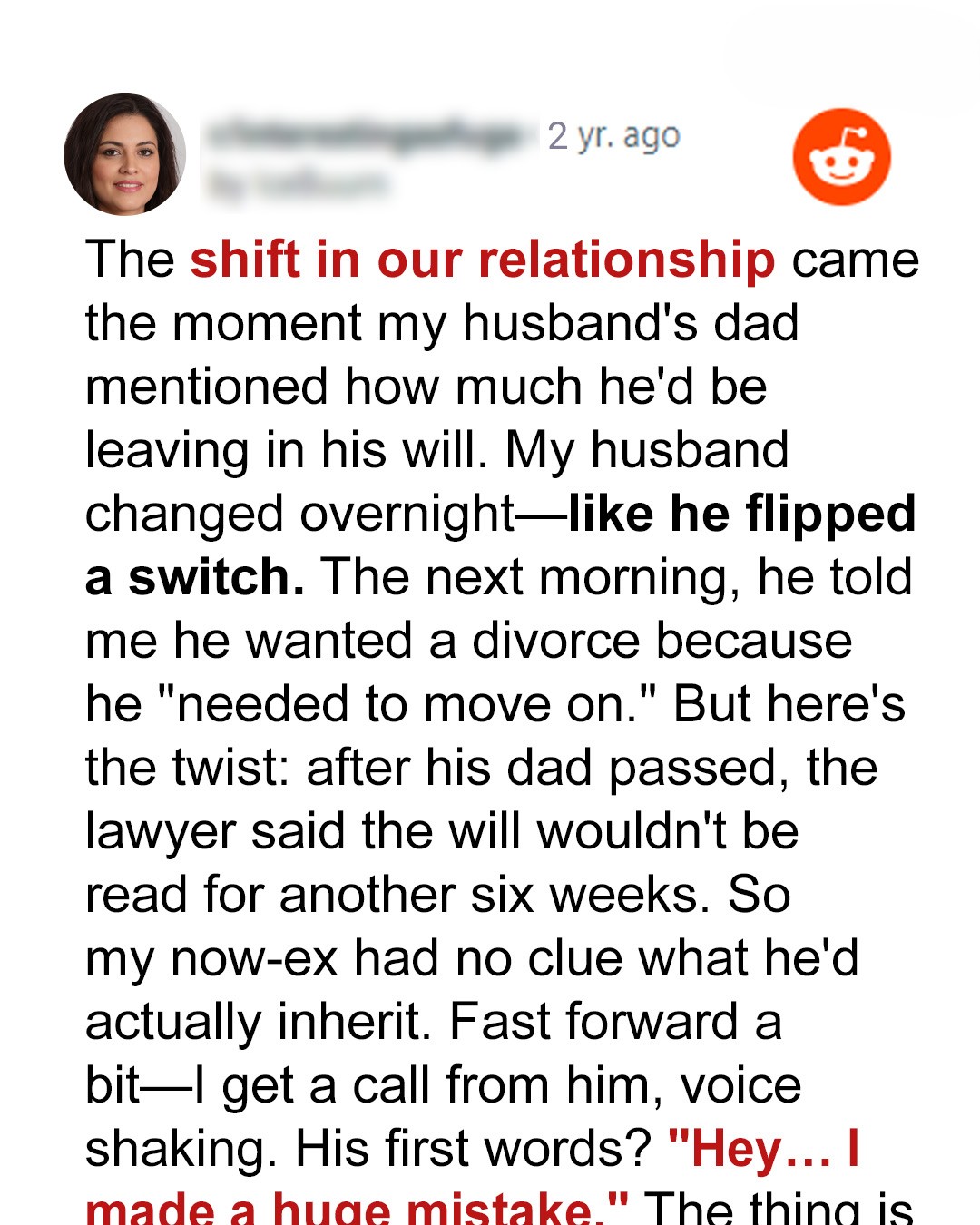 “There’s a will,” he said breathlessly. “Dad… he left something big.”“Like… how big?” I blinked.“Half a million,” he whispered, a little stunned, a little giddy. “The lawyer said there’s paperwork, formalities, but yeah. It’s real.”I remember the way he looked at me. Not through me, not with affection, but like I was suddenly part of an equation he hadn’t finished solving yet.