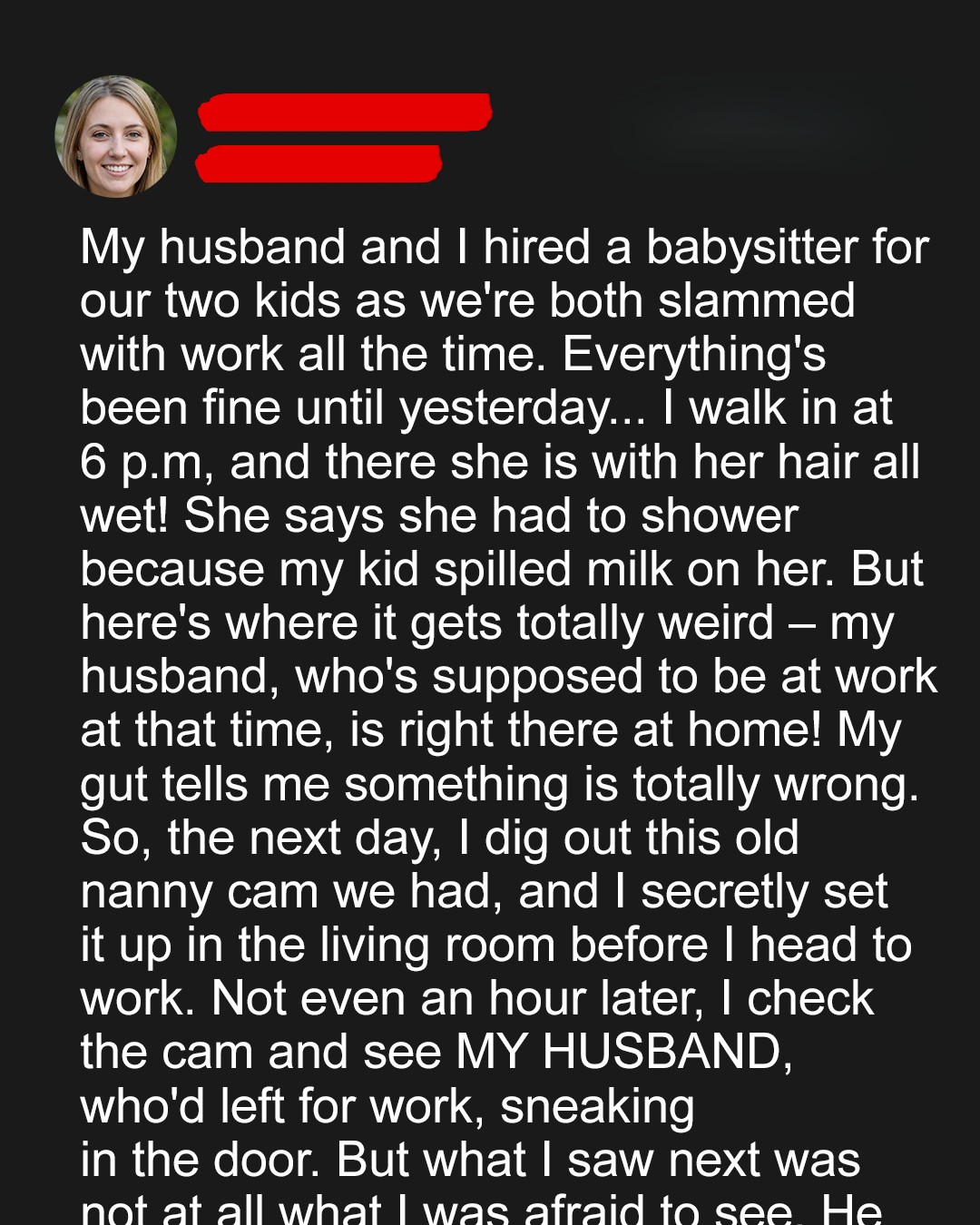 The sight left me dumbfounded. Confusion clouded my mind as I tried to reconcile the images from the nanny camera with the man standing before me. Was I cheated on or WHAT?! My husband, sensing my distress, turned to me with a look of worry.