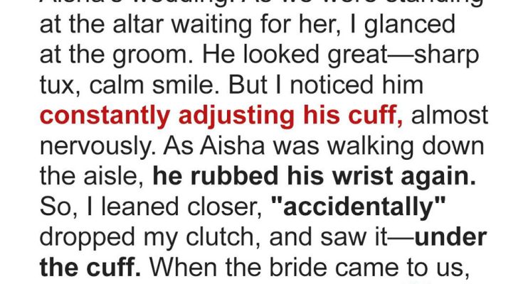 Everything looked perfect at my best friend Aisha’s wedding until I saw the groom’s strange habit.Jason kept rubbing his wrist, wincing like it hurt.It was a gesture that I’d seen before: my brother did the same thing after he got a fresh tattoo.As Aisha reached the altar, Jason’s sleeve slipped just enough for me to see the truth — a red, irritated patch of skin and fresh black ink spelling out a name.