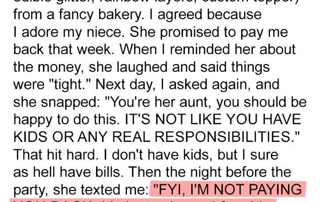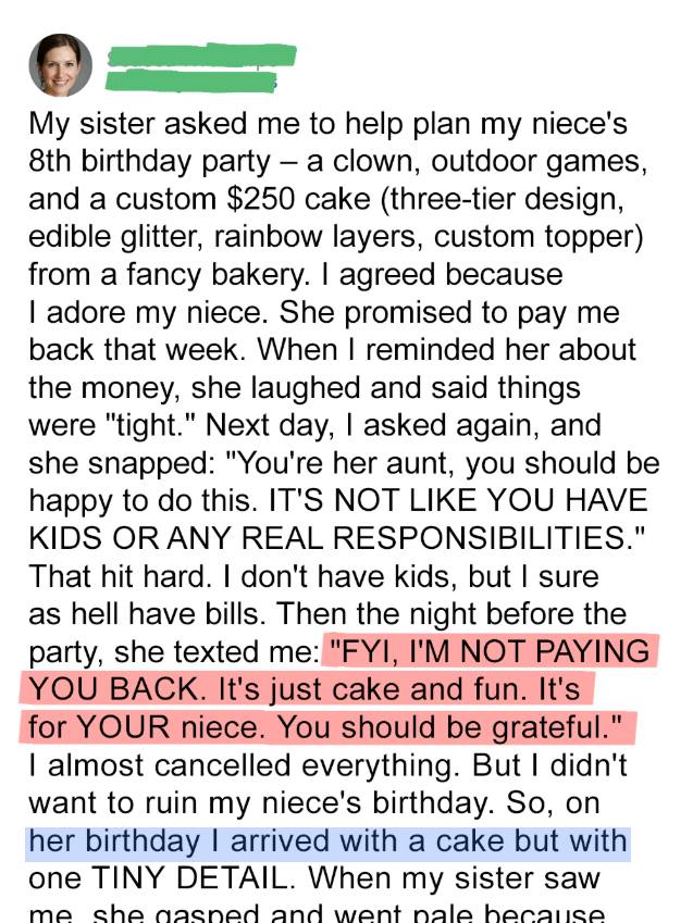 My Sister Refused to Pay Me Back $250 for the Birthday Cake She Asked Me to Order for Her Daughter
