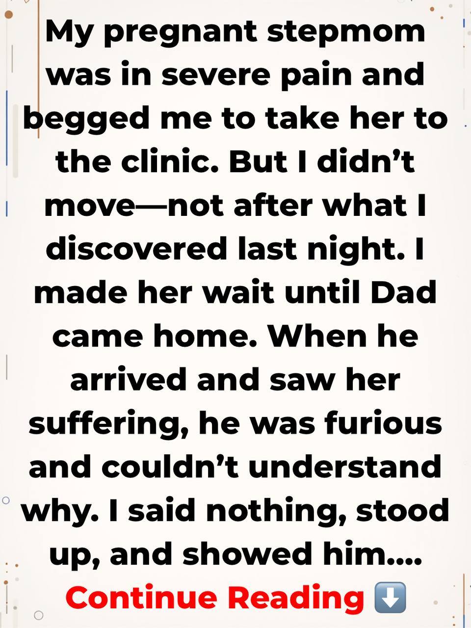 Here’s Thomas’s letter:Hi Bright Side,This morning, my pregnant stepmom, in deep pain, begged me to take her to the clinic.But I didn’t move—not after what I found out last night!I made her wait until Dad got home. When he arrived and saw her agony, he was furious; he couldn’t understand why…