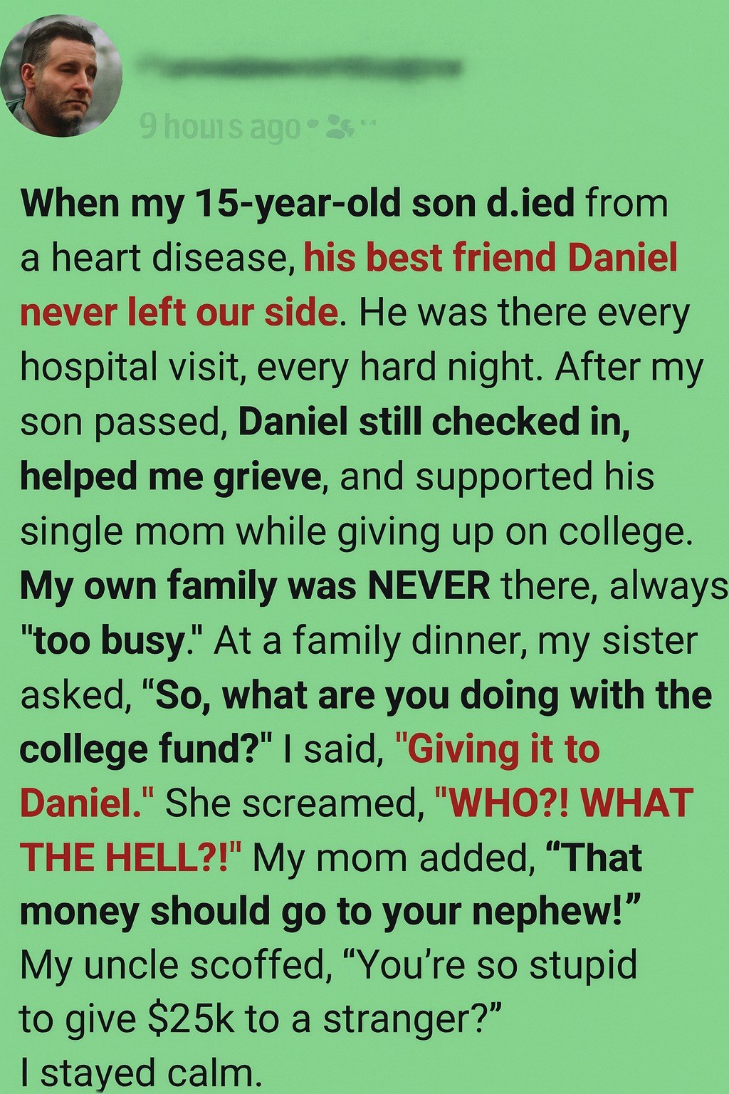 Losing my son changed everything. It didn’t just shatter my world—it peeled back the layers on the people around me, exposing truths I never expected. When my family demanded my late son’s college fund as if they were owed it, I said “okay,” but only under one condition—one that shook them all to their core.