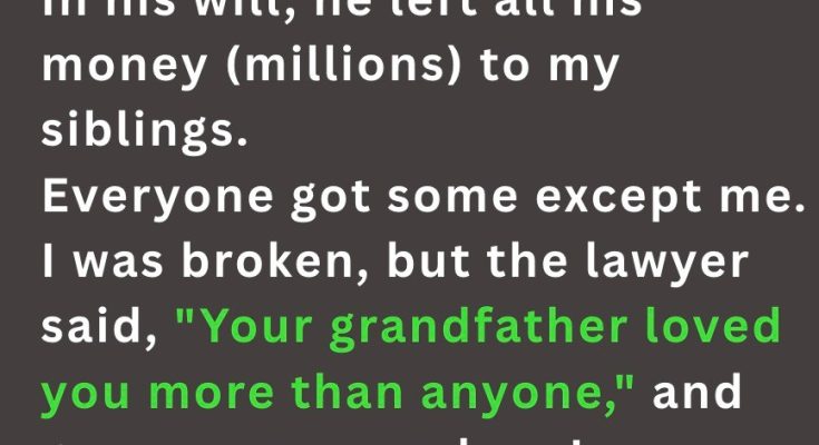 My grandfather’s death affected me deeply. He remained the single person I could rely on completely — the one who shared bedtime tales with me, secretly gave me sweets when Mother wasn’t watching, and offered excellent guidance during difficult times. When the time arrived to hear his will, I appeared grief-stricken yet expectant, thinking he would have given me something to cherish his memory.