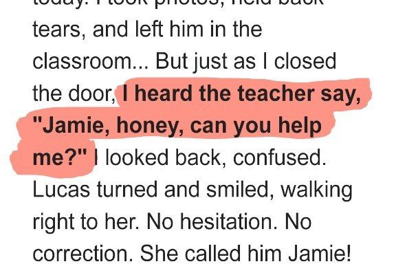 It was HER. Lucas’s teacher—the one who called him Jamie.