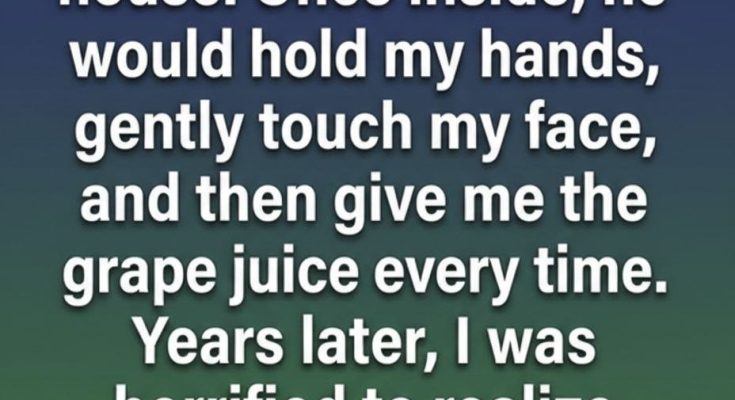 Once inside, everything unfolded the same way each time. He would hold my hands, gaze at my face with careful attention, and smile softly before pouring two glasses of grape juice. He rarely spoke, yet the way he focused on me made the room feel calm and protected.