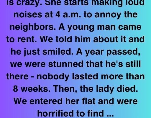 We kept the apartment rent low—because of the woman next door.For years, no tenant lasted more than eight weeks. Every morning at exactly 4 a.m., Mrs. Dragu would start making noise—dragging her cane along the hallway, slamming cupboards, stomping around like she was performing some invisible routine. Then came that sharp, breathless laugh, like she was the only one who understood the joke.